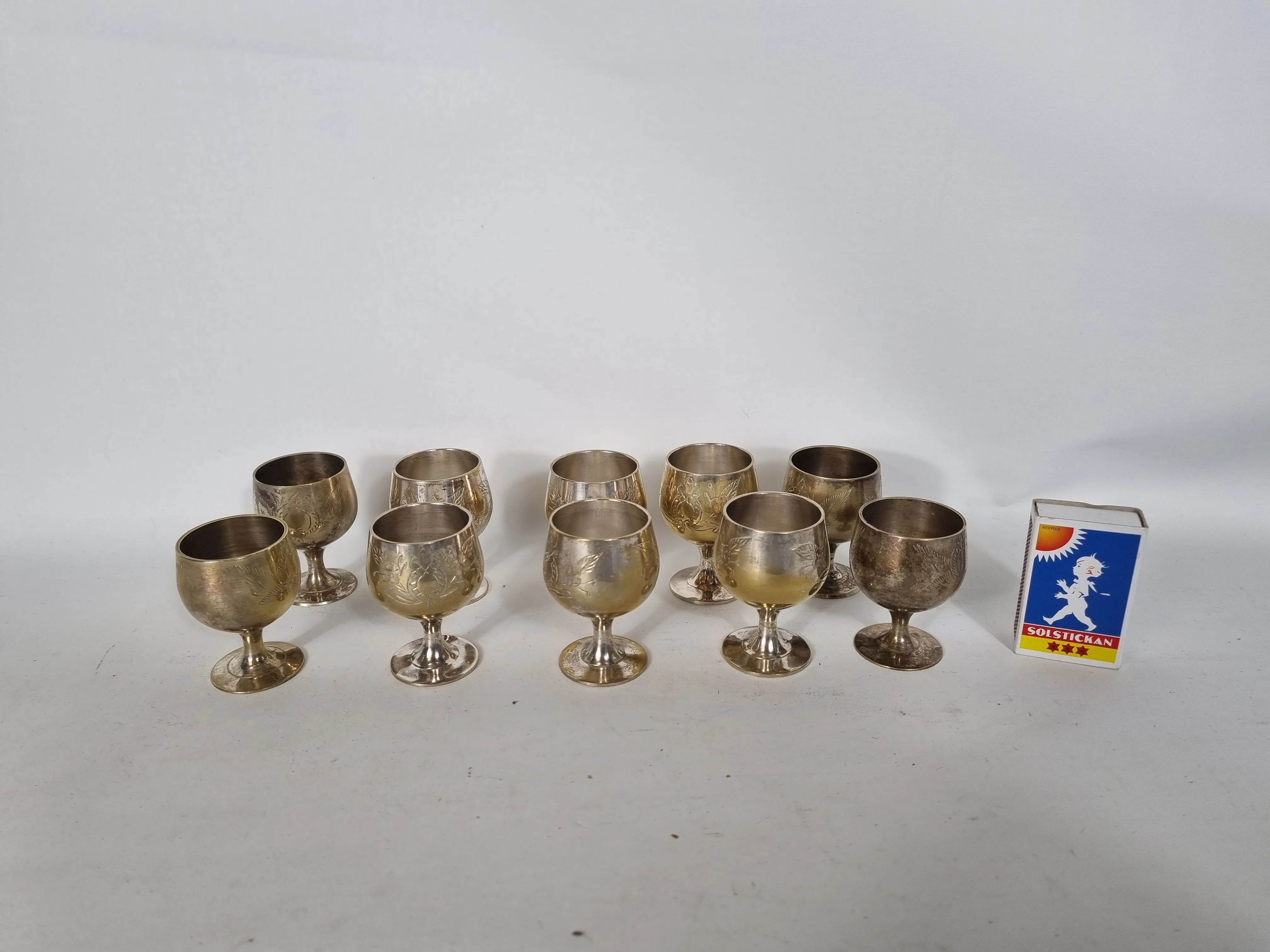 142. Likörkoppar i nysilver
