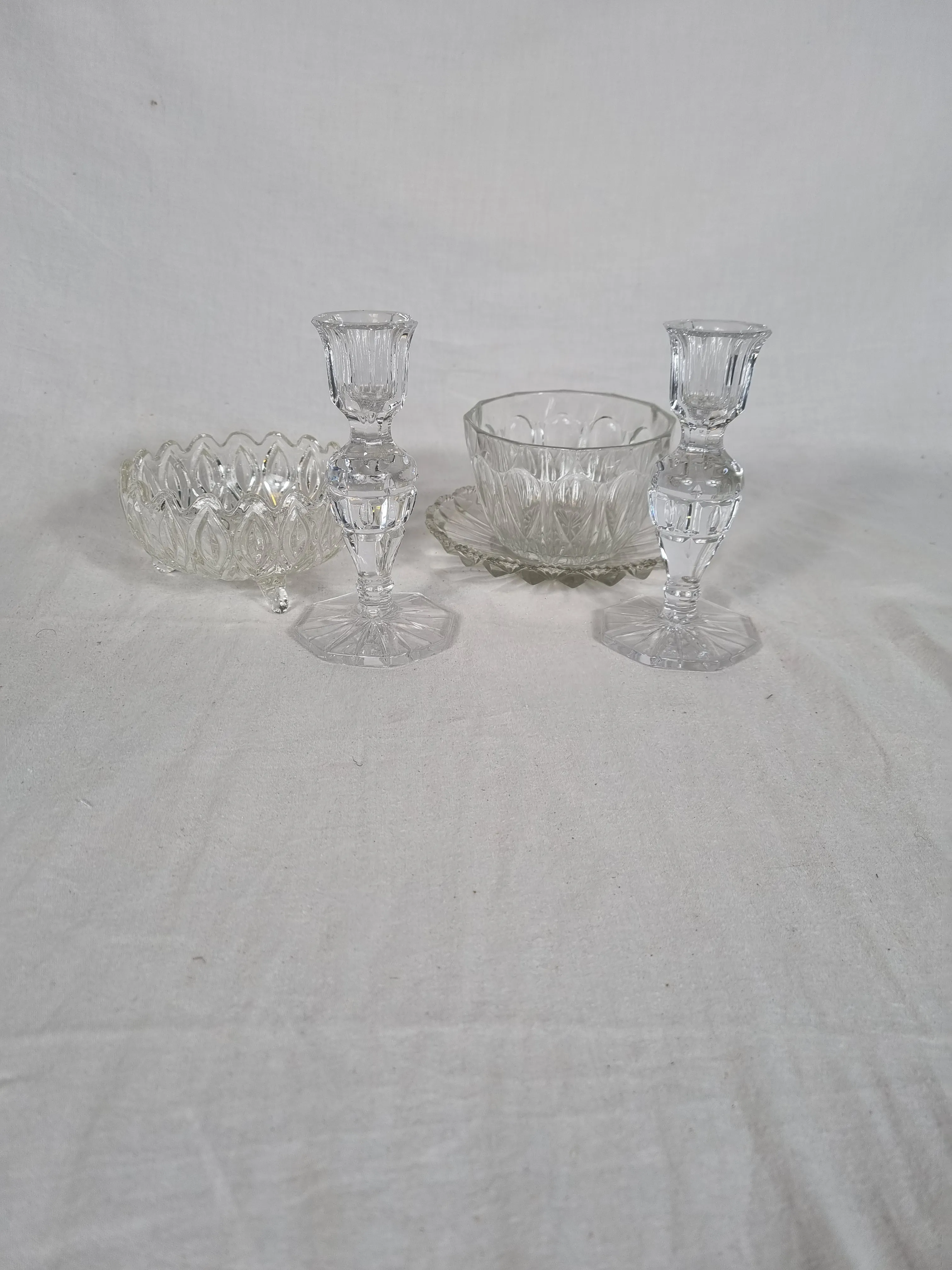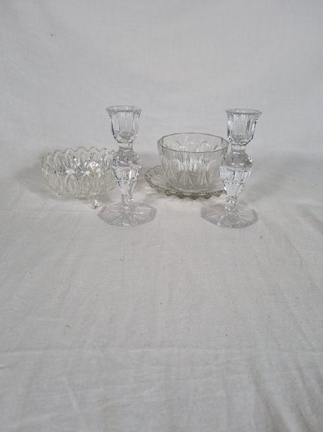 118. Ljusstakar samt skålar i glas