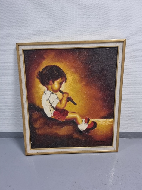 Tavla, pojke med flöjt