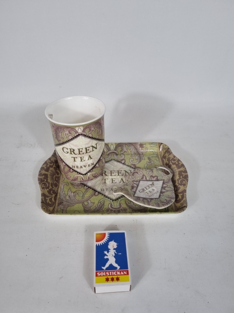 Tekopp med bricka och fat till tepåse