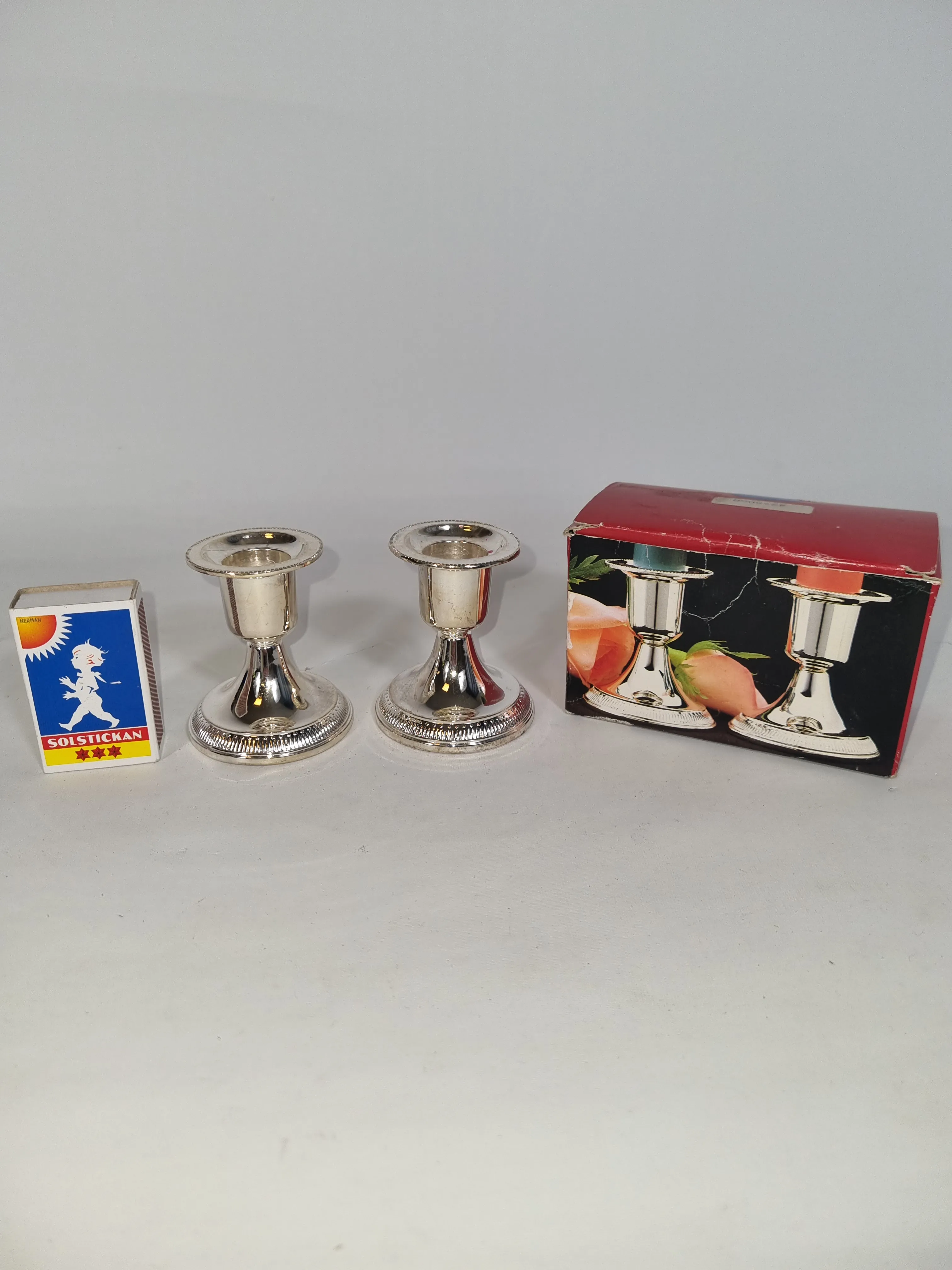 Två små ljusstakar silverpläterade