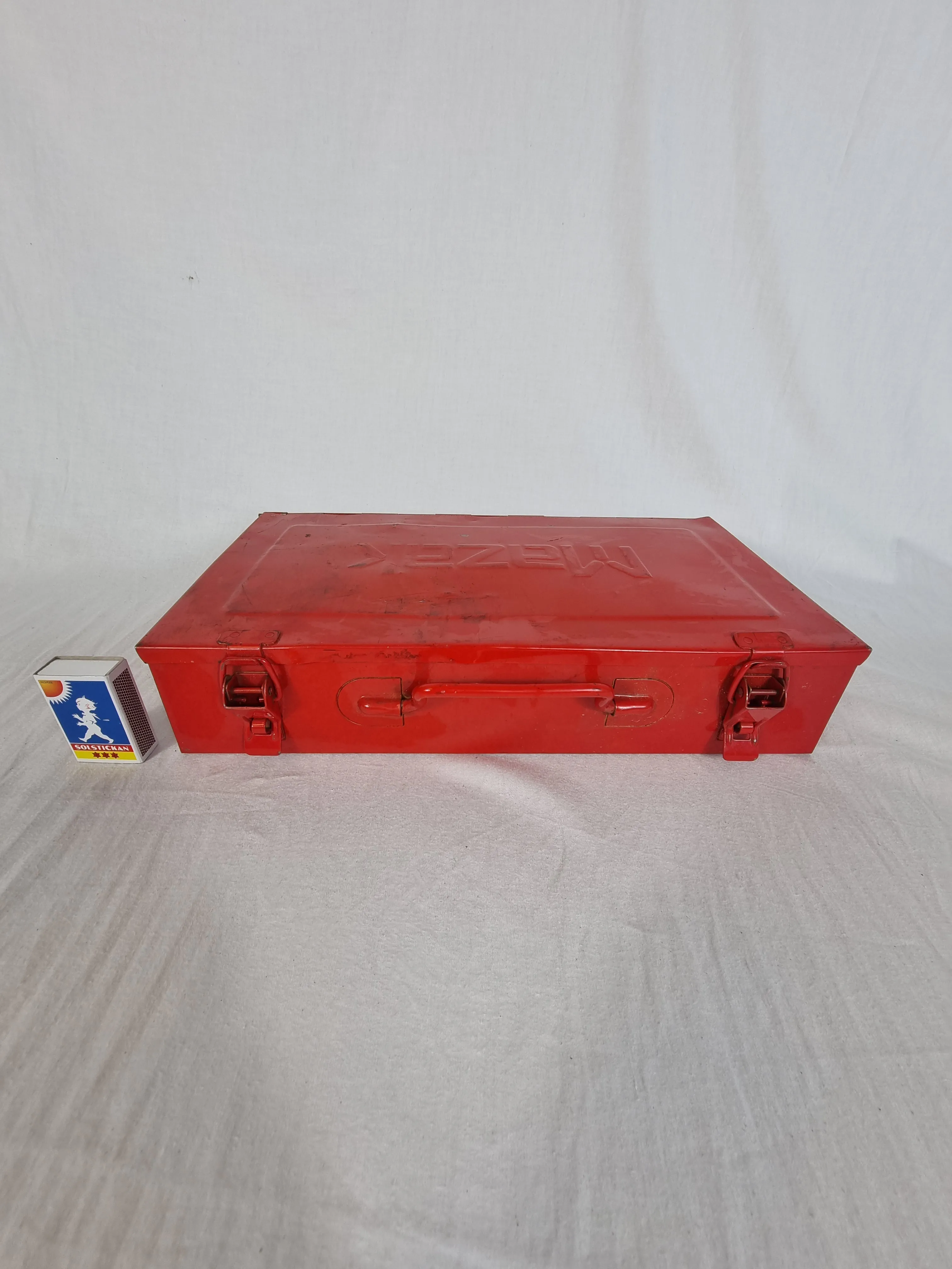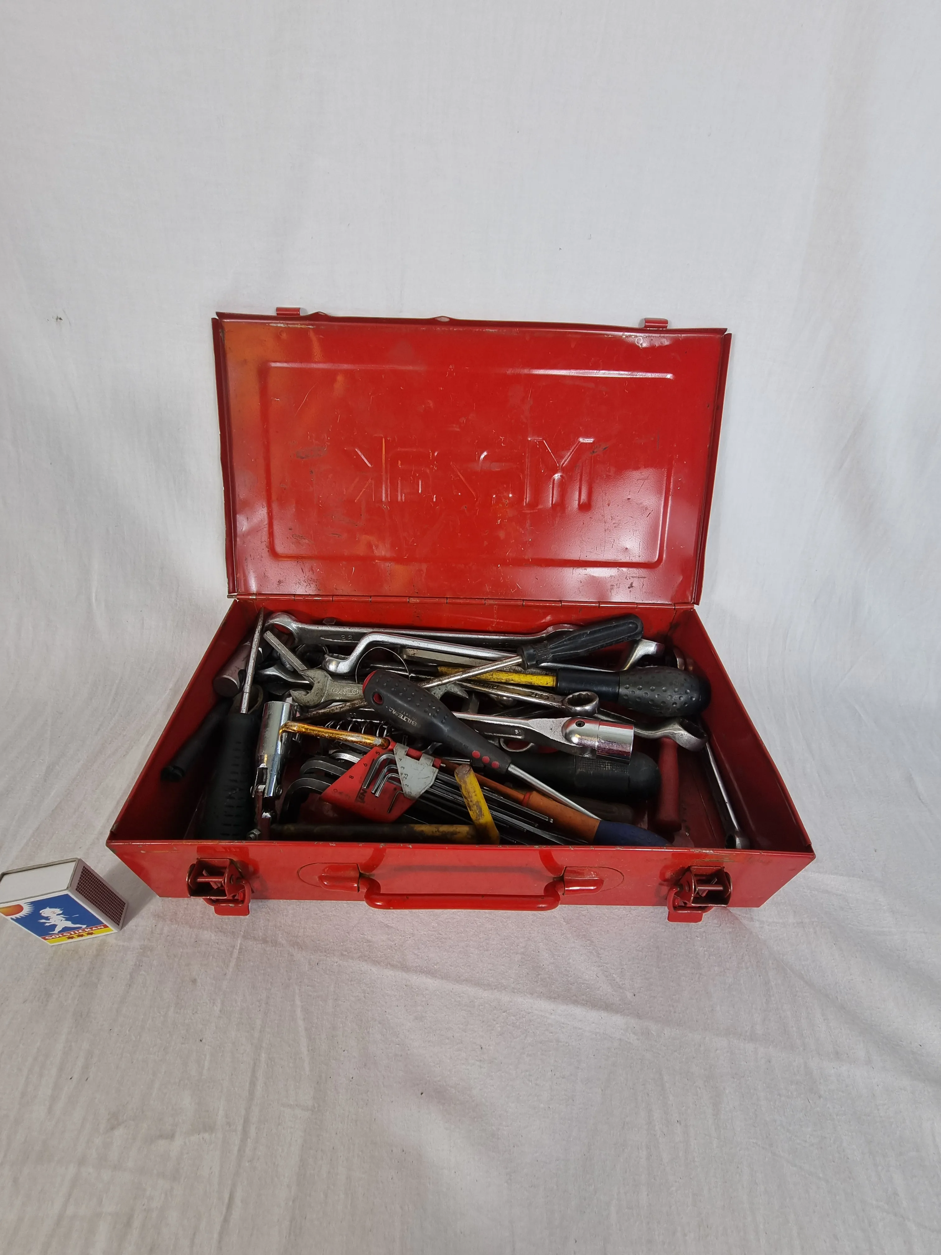 Verktygslåda i plåt med blandade verktyg